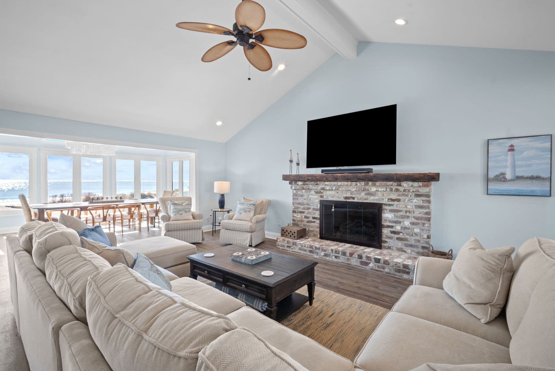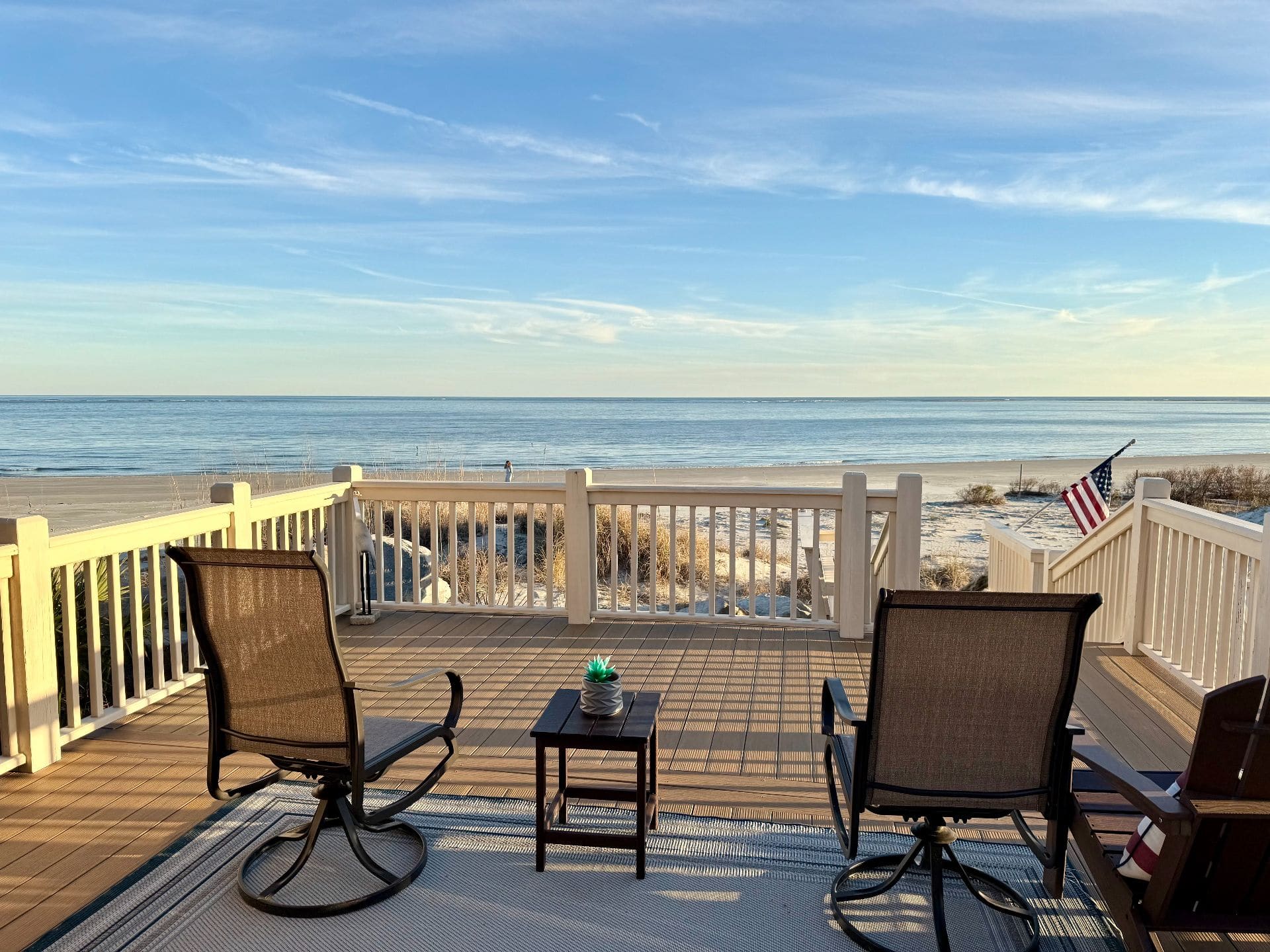 Unlike many beachfront properties that require a long walk down boardwalks, this home offers direct beach access—step off the deck and onto the sand. Located near the end of the beach, you’ll enjoy a more peaceful stretch of shoreline with less foot traffic and expansive coastal views.