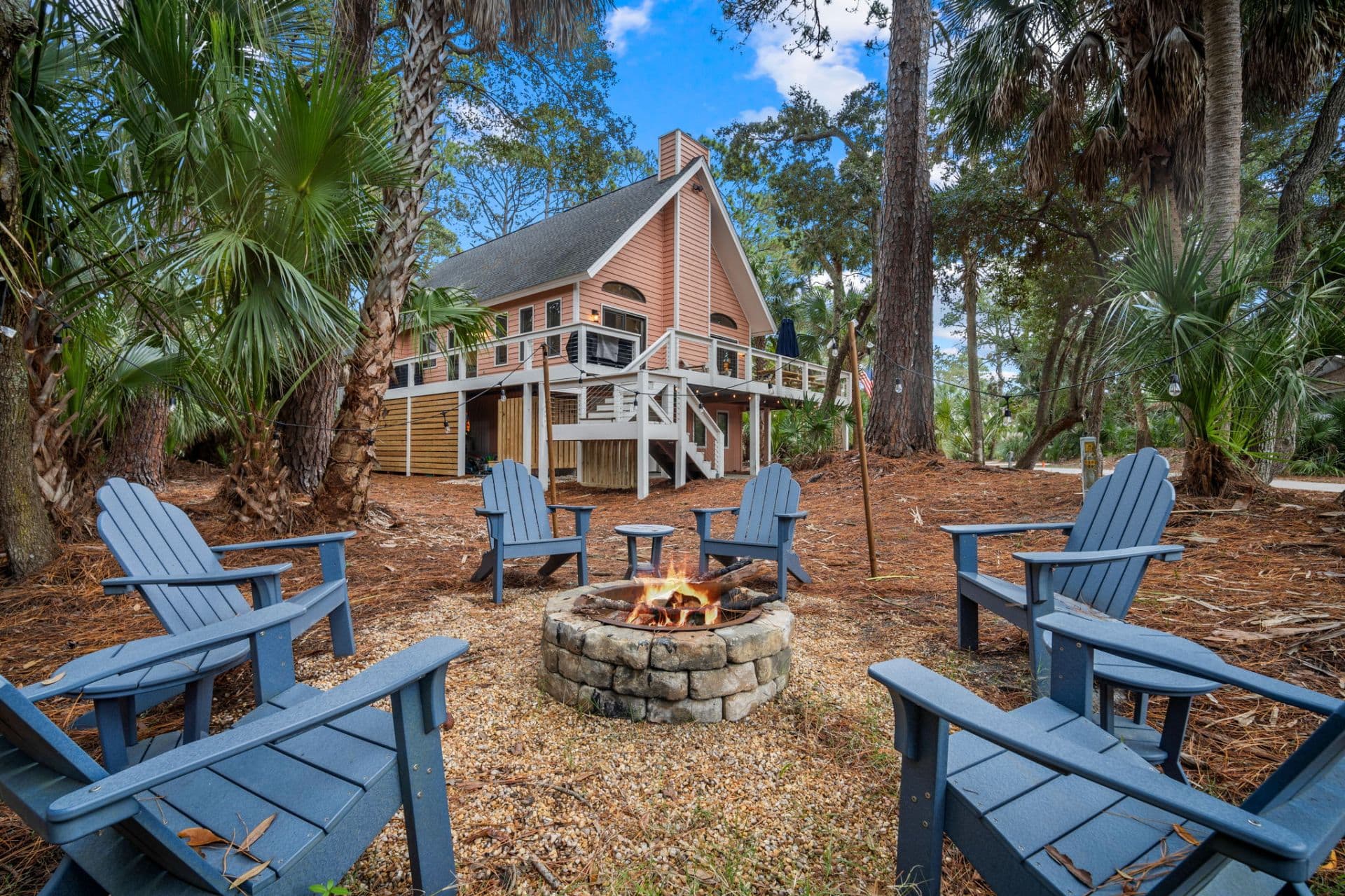 Seating area with Adirondack chairs and coffee table